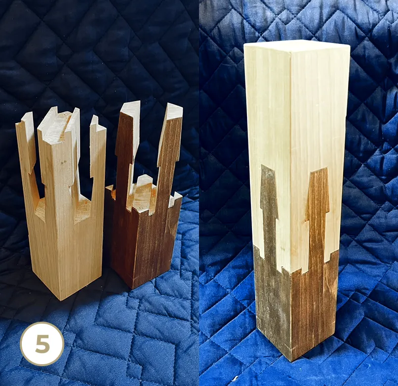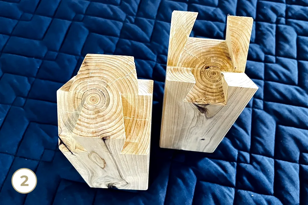 写真5:四方かま継ぎ…製作には高度な技術が必要。太い柱などで固い木材を使うことが多い。